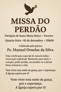 A Paróquia de Santa Maria Maior, no Funchal, assinala na próximo dia 10 de Dezembro, a Missa do Perdão, uma celebração de carácter espiritual e comunitário.